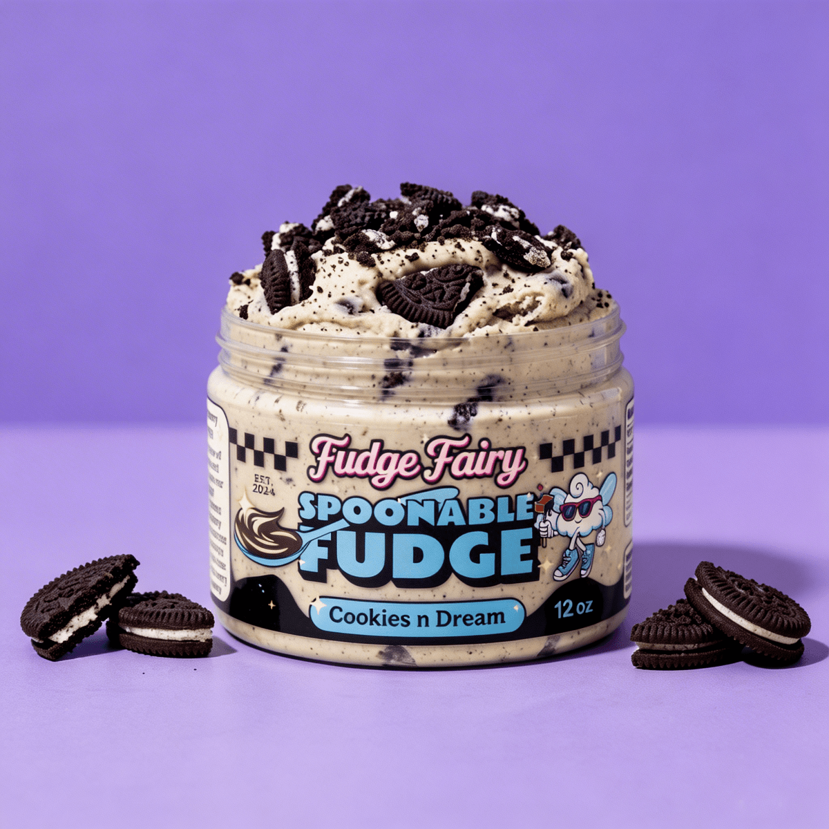 Creamy white chocolate fudge packed with crunchy chocolate cookie pieces. Think cookies & cream, but richer, smoother, and next level. It tastes exactly like the inside of an oreo! Read more about this flavor on it's main product page here.